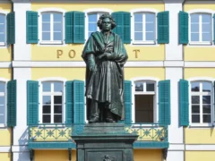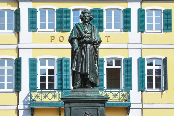 Bonn ist eine westdeutsche Stadt am Rhein. Eines ihrer Wahrzeichen ist das Beethoven-Haus. Das in der Stadtmitte gelegene Geburtshaus des Komponisten ist heute eine Gedächtnisstätte mit Museum. In der Nähe befinden sich das Bonner Münster mit seinem romanischen Kreuzgang und gotischen Stilelementen, das Alte Rathaus mit seiner roségoldenen Fassade und das Poppelsdorfer Schloss mit seinem Mineralogischen Museum